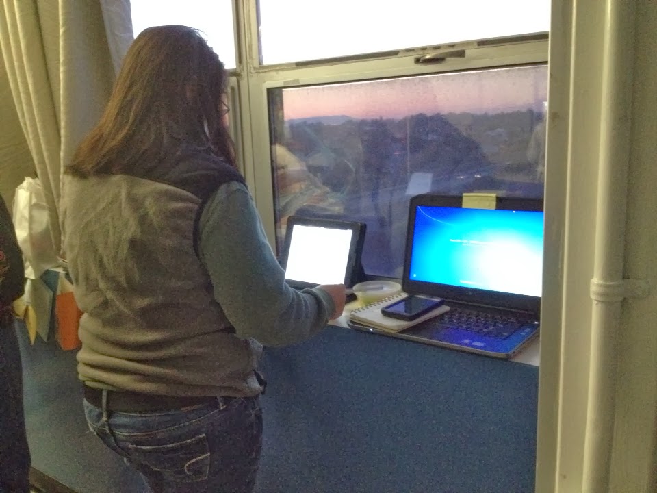 The Case Manager also wanted to make sure she was able to contact Cindy’s main support team – Rita, Mary and Debbie.  One of us is usually with Cindy at the hospital.  Here is a picture of Rita setting up shop at Cindy’s bedside: