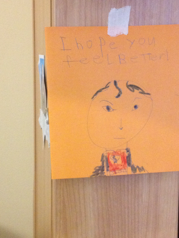 This is Tammy’s card to her Aunt Cindy. That’s a picture of Cindy as Superman because she has super powers.