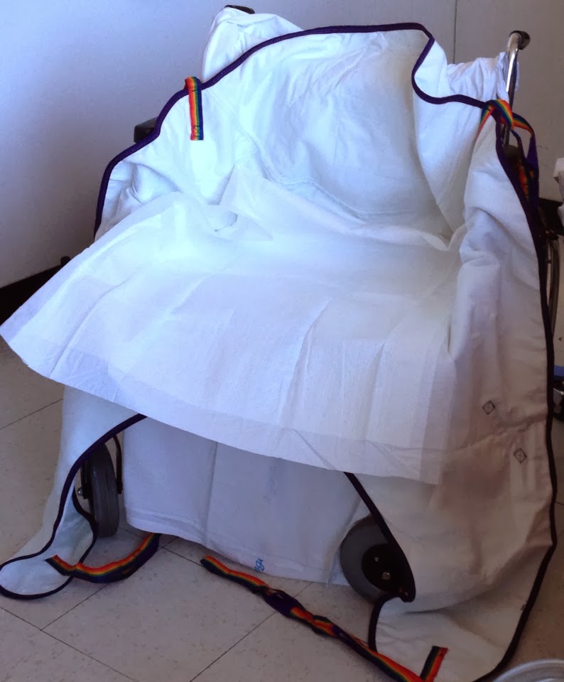 Cindy got to sit in a chair today.  She sat at the edge of the bed for only a few minutes and then was able to stand up, turn and sit in the chair – with a little help from the nursing staff.  She sat in the chair doing her excersizes while the Physical Therapist sat across from her giving directions.  They chatted about their cats and exchanged some interesting cat stories.